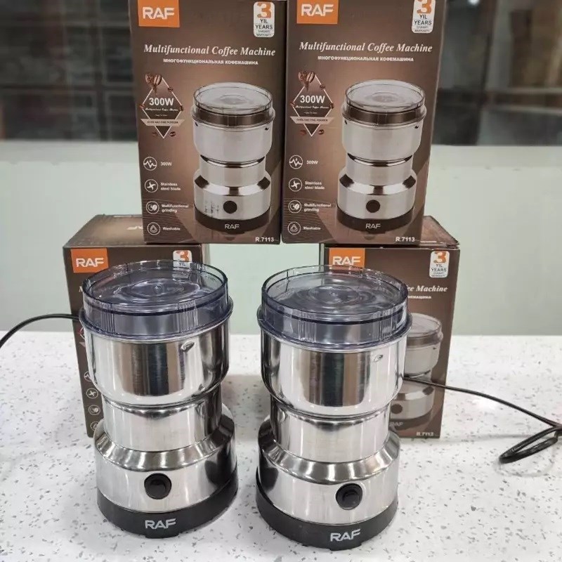 ما می توانیم به این آسیاب برقی RAF آسیاب چندکاره نیز بگوییم چون علاوه بر اینکه برای قهوه استفاده می شود برای ادویه های خشک و بعضی از سبزی های خشک هم می شود از این آسیاب ها استفاده کرد ، آسیاب چند کاره و خردکن راف RAF ساخت چین می باشد و از موتور 300 وات و دارای 4 تیغه استیل برای خردکردن قهوه و ادویه قابل استفاده می باشد