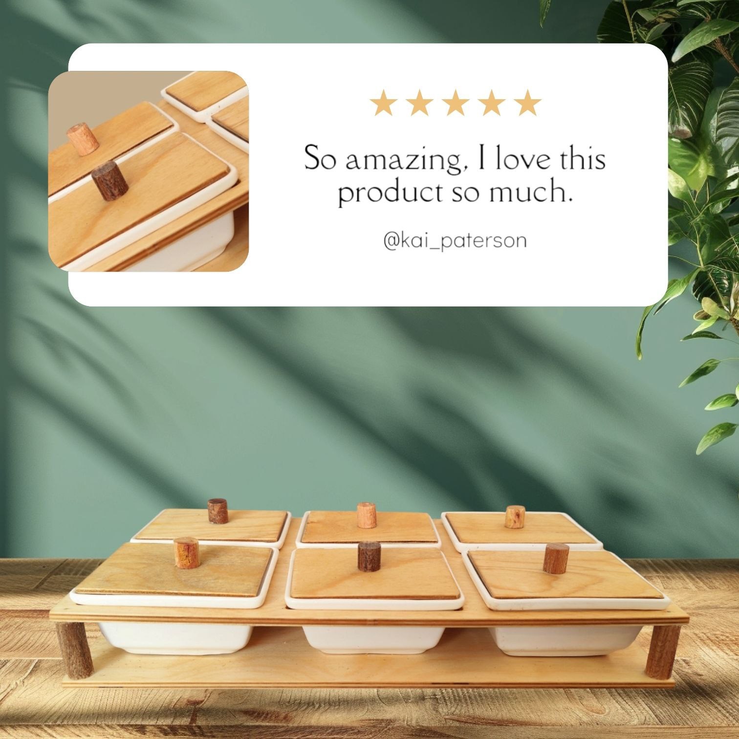 6-Piece Ceramic Snack bowl Set with Wooden Serving Tray and Lids
